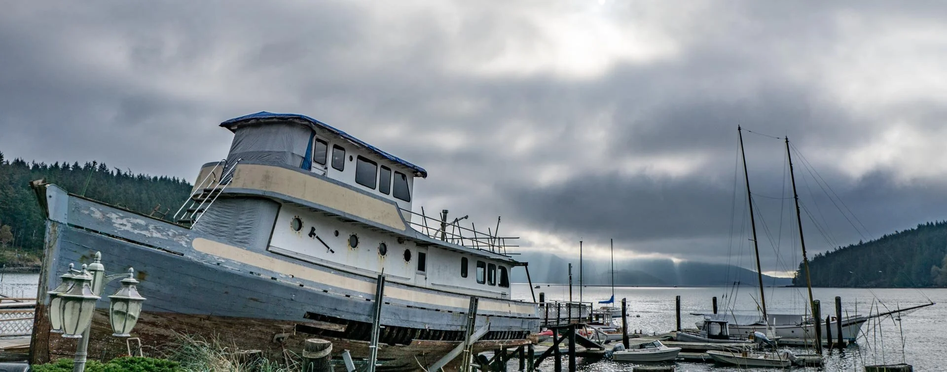 Below: Ferry arriving at Shaw Island; apple barn (Orcas); The Kitty B at Lieberhaven Resort (Orcas)
